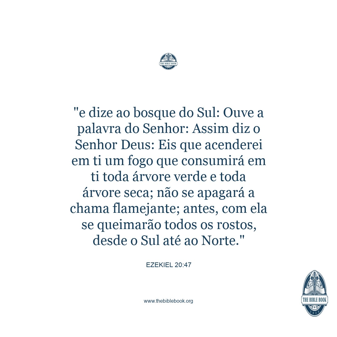 And say to the forest of the south, Hear the word of the LORD; Thus says the Lord GOD; Behold, I will kindle a fire in you, and it shall devour every green tree in you, and every dry tree: the flaming flame shall not be quenched, and all faces from the south to the north shall be burned therein.