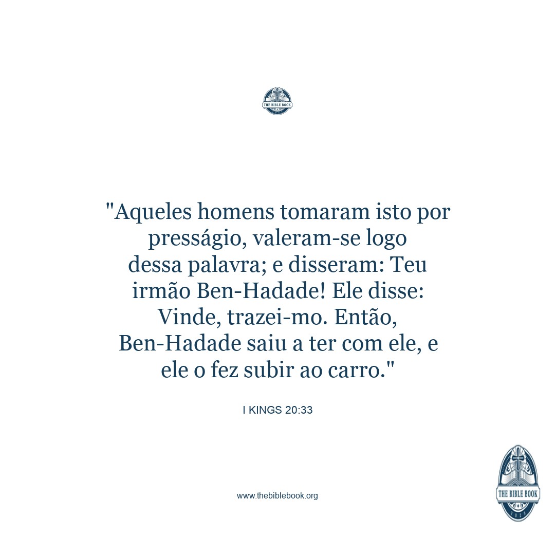 Now the men did diligently observe whether any thing would come from him, and did hastily catch it: and they said, Your brother Benhadad. Then he said, Go you, bring him. Then Benhadad came forth to him; and he caused him to come up into the chariot.