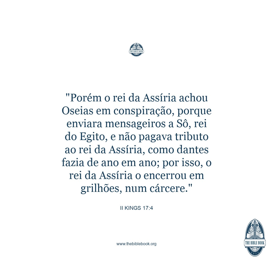 And the king of Assyria found conspiracy in Hoshea: for he had sent messengers to So king of Egypt, and brought no present to the king of Assyria, as he had done year by year: therefore the king of Assyria shut him up, and bound him in prison. ¶