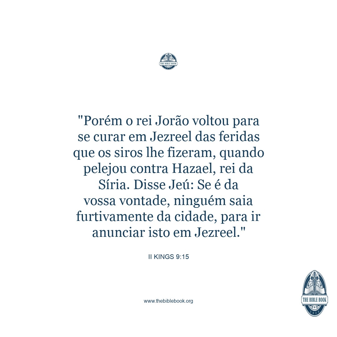 But king Joram was returned to be healed in Jezreel of the wounds which the Syrians had given him, when he fought with Hazael king of Syria.) And Jehu said, If it be your minds, then let none go forth nor escape out of the city to go to tell it in Jezreel.