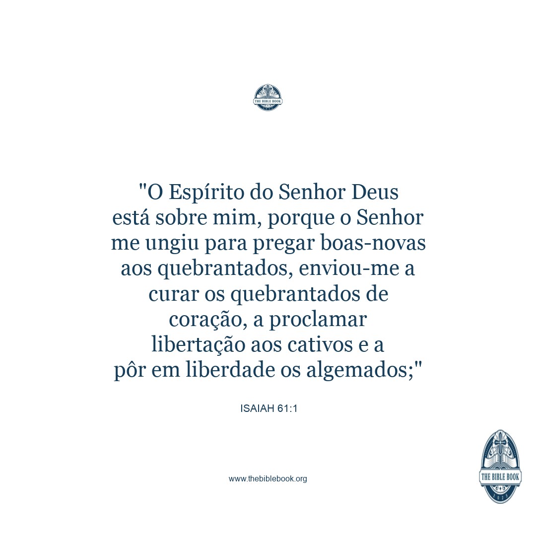 The Spirit of the Lord GOD is on me; because the LORD has anointed me to preach good tidings to the meek; he has sent me to bind up the brokenhearted, to proclaim liberty to the captives, and the opening of the prison to them that are bound;